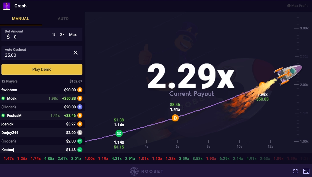 Aqui, os jogadores apostam em um multiplicador que cresce a cada segundo, enquanto o objetivo é retirar a aposta antes que o multiplicador “quebre” ou “exploda”. Se você retirar sua aposta antes do crash, você ganha o valor multiplicado.