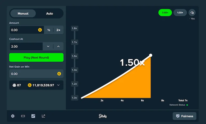 O multiplicador começa em 1x e vai aumentando a cada segundo. Você deve decidir o momento certo para retirar sua aposta, antes que o multiplicador “exploda”. Se você conseguir retirar a tempo, ganhando o valor multiplicado, você sai com um prêmio.